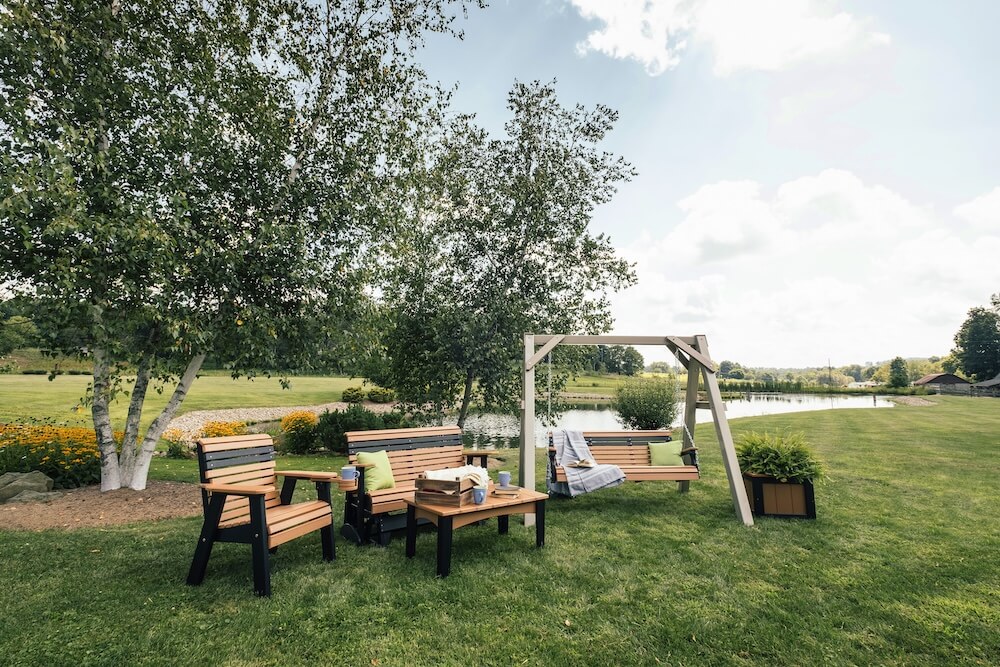 From morning birdsong to evening owl sounds, our furniture lets you hear it all in comfort. Our builders use durable materials to bring warmth, style, and beauty to your favorite outdoor spaces. From a classic Adirondack to a cozy bench to a full dining set, every piece will invite you to stay outside a little longer for years to come.